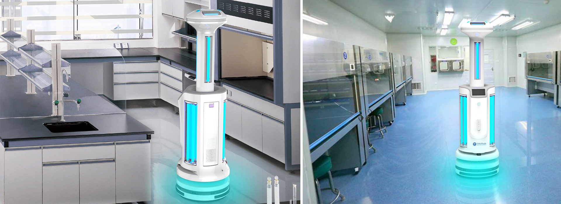 以機器人為載體,集成紫外線、超干霧過氧化氫、空氣過濾三種消毒方式于一體,結合檢驗科的特殊情況:患者血液、體液、分泌物、排泄物均具有傳染性,消毒要求較高,且防止檢驗科內的交叉感染及醫護人員的職業防護是重點工作,結合機器人自主移動、自動工作的特性,實現傳染科病房內消毒過程量化管理。
